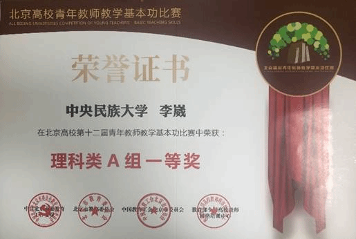 青年教师李崴荣获理科类(A组)一等奖,同时还获得最受学生欢迎奖、最佳现场展示奖及最佳教学反思奖三项单项奖,指导教师周宜君获优秀指导教师奖。该成绩是AG娱乐城自参加北京市青教赛以来的理科类历史最好成绩,实现了北京市青教赛理科类一等奖零的突破。