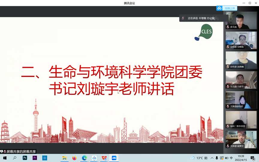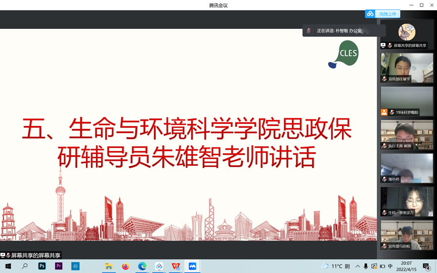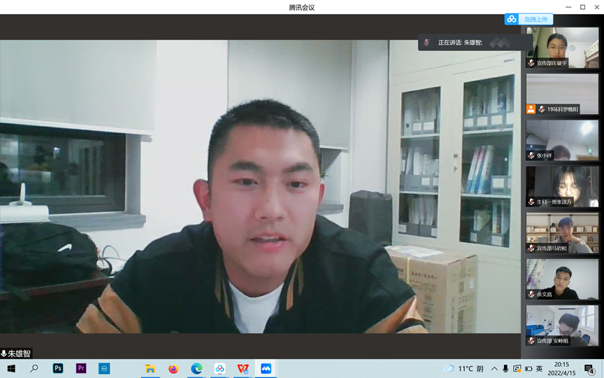 思政保研辅导员朱雄智老师发言。首先,他与大家分享了自身的隔离经历,希望大家能够在居家办公的环境下继续高质量高效率地完成部门工作。其次,他指出了学生会在近期工作中存在懈怠,希望各部门提升工作态度,提高同学们对线上活动的参与度。随后,他希望同学们在家能够做好“三心”:用心、专心、细心,以此来更好地完成工作与学习任务。最后,他希望同学们调节好自身情绪,配合好防疫政策,健康安全的度过这段居家学习时间。