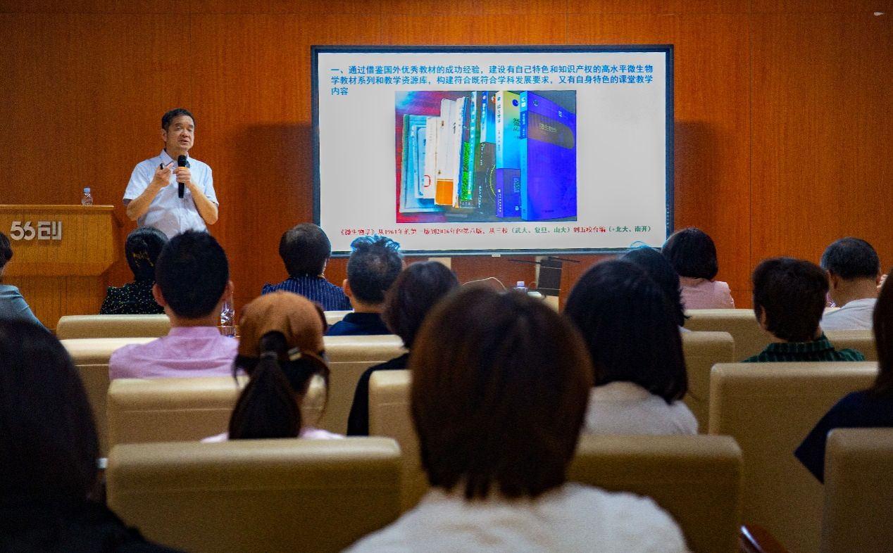 陈向东教授以武汉大学“微生物学”课程为例,从课程建设发展的历史沿革、教育理念、教学设计、特色活动、管理过程、有效抓手等方面,向大家展示了国家级一流课程的建设思路和过程。陈教授指出,高校专业基础课程建设是涉及教师、学生、教材、教学技术手段、教育思想和教学过程管理的系统工程,不断发展的立体化教材建设深刻影响着课程建设的各个环节。除此之外,教师还需要建立与现代教学技术相适应的教学方法和教学体系,运用信息化技术丰富教学手段,增强课堂吸引力;激发学生的主动思考和参与意识,引导学生养成自我学习管理的习惯,提高学习效率。从而实现课程教学的高质量、全方位,进而打造一流本科课程。