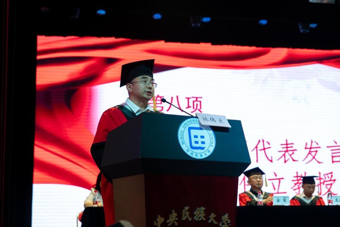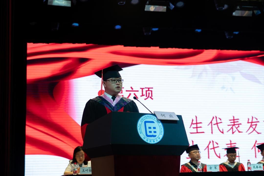 辛勤培育的感激之情。他从自身的求学经历中表示,在国家发展建设的广阔舞台上,同学们要不断地勉励和要求自己,才能在人生的道路上勇往直前、乘风破浪。最后他表示在未来的道路中,会利用专业所学知识,为国家的建设作出贡献,不负母校,不负时代,不负芳华。