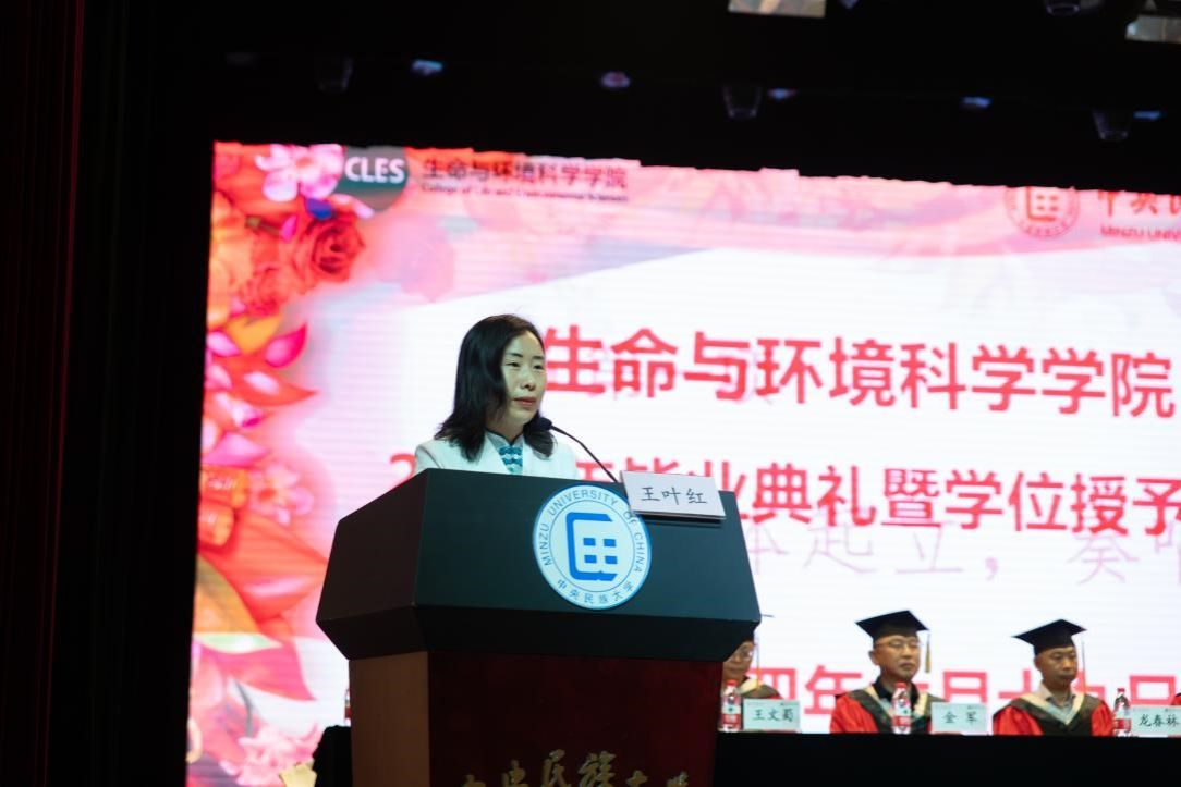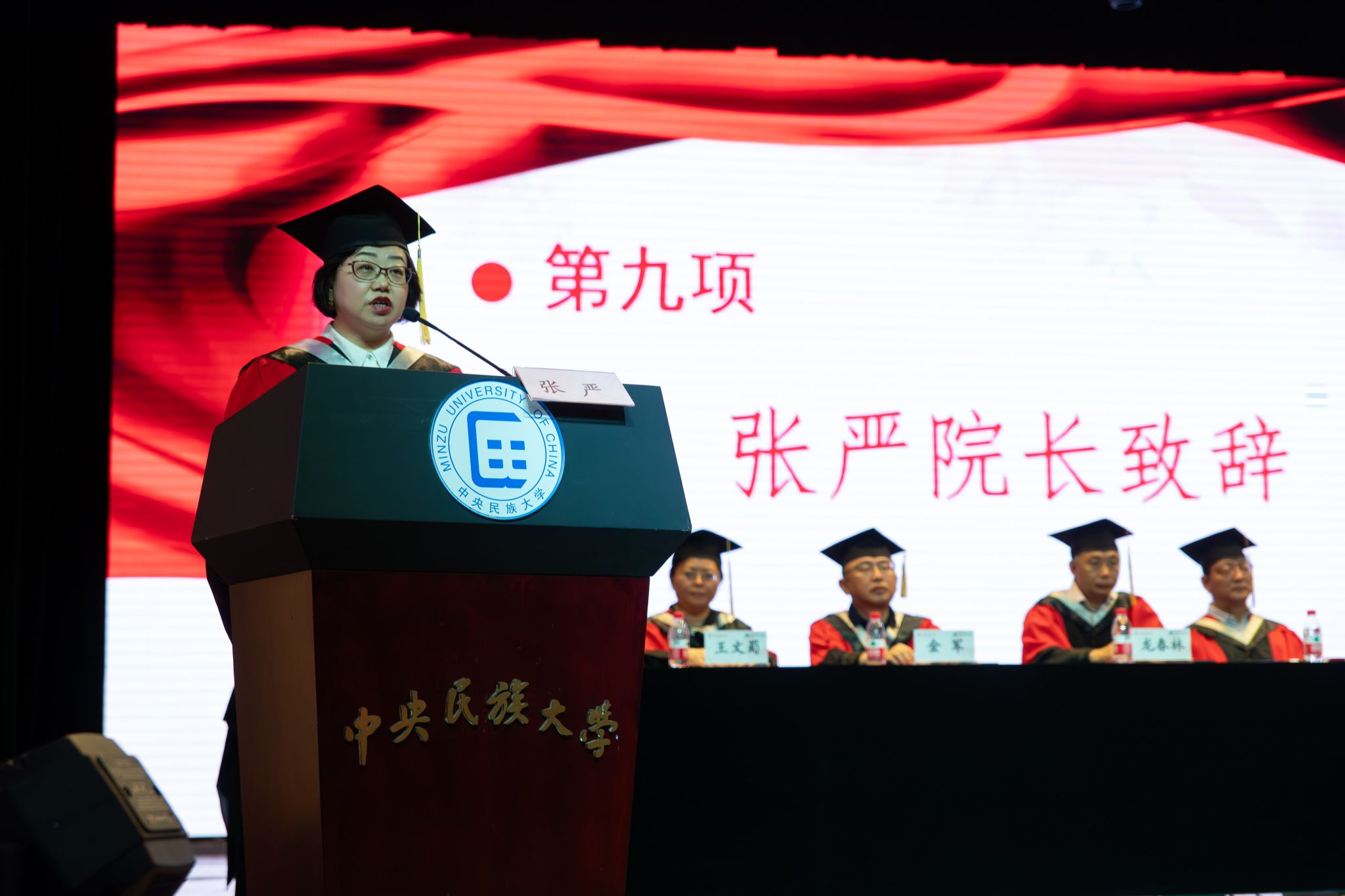 最后,院长张严教授发表了热情洋溢的致辞。她首先向全体毕业生表示热烈祝贺,并向优秀毕业生、优秀学位论文获得者以及选择到西部基层就业的毕业生表示敬意。她鼓励毕业生们在新时代的征程中用实际行动践行生环精神,履行生环职责,厉行青年担当,当面对挫折和困难时保持坚强的意志和耐心,避免浮躁,脚踏实地,成功一定属于你!