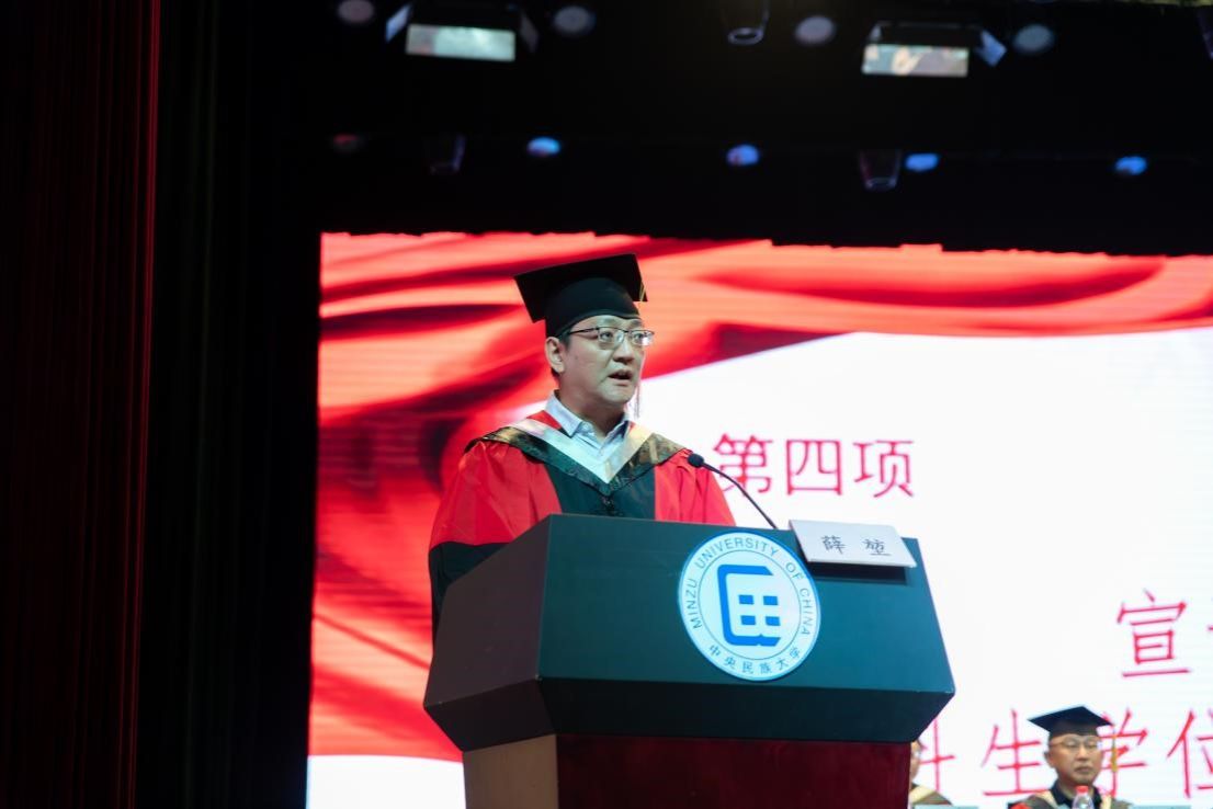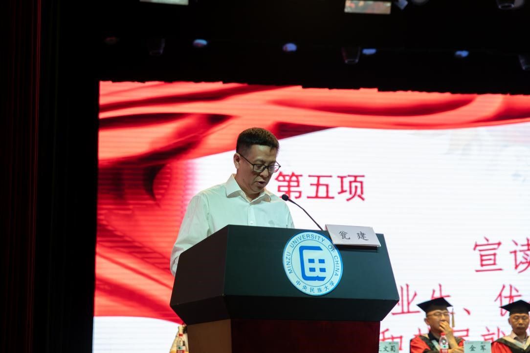 党委书记瓮建宣读2024届优秀毕业生、优秀毕业论文、西部和基层就业毕业生名单。