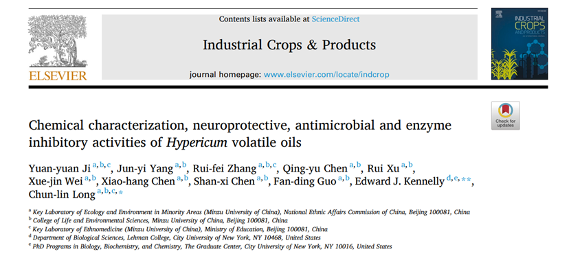龙春林教授团队在金丝桃属民族药物学研究中取得新进展,相关研究成果以“Chemical characterization, neuroprotective, antimicrobial and enzyme inhibitory activities ofHypericumvolatile oils”为题在Industrial Crops and Products(影响因子5.645,农林科学类1区Top)上发表,论文连接:。