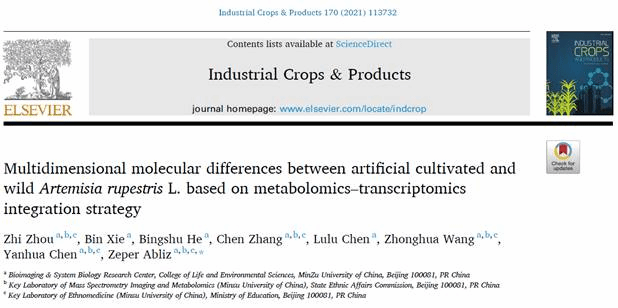/生物成像与系统生物学研究中心教师周帜博士在药用植物新疆一枝蒿的野生和人工栽培品种之间的分子差异研究方面取得重要进展,研究成果以“Multidimensional molecular differences between artificial cultivated and wildArtemisia rupestrisL. based on metabolomics–transcriptomics integration strategy”为题于2021年8月25日在线发表在Industrial crops & products(农林科学类1区Top)上发表,论文链接:。