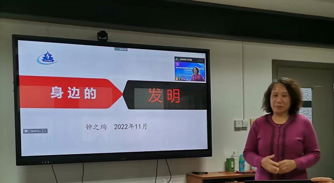 主讲专家钟之绚女士在以“身边的发明”为题的报告中,首先从科技创新老顽童、一线发明排头兵、奇思妙想致青春、改变世界大手笔、百姓身边智慧多等几方面展示了源于我们身边的发明。她说我们衣食住行中的一切用具,从布帛丝绸到锅碗瓢盆,从小楼暖阁到汽车飞机,无一不是人类智慧的结晶。从厨房革命到卫生间革命,从电气化生活到信息化生存,发明创造为改善我们的美好生活提供着无限可能,创新驱动发展成为当今最重要的时代特征。