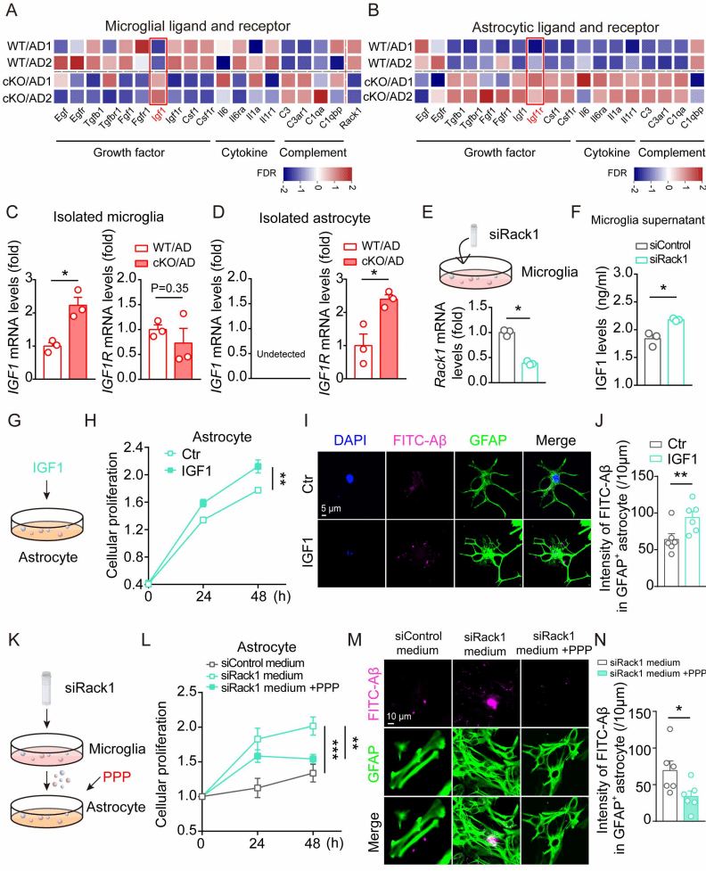 图6:IGF1-IGF1R信号介导小胶质细胞与星形胶质细胞的互作