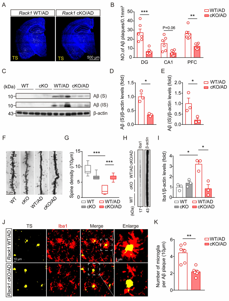 图2:敲除小胶质细胞Rack1改善AD模型小鼠的病理损伤